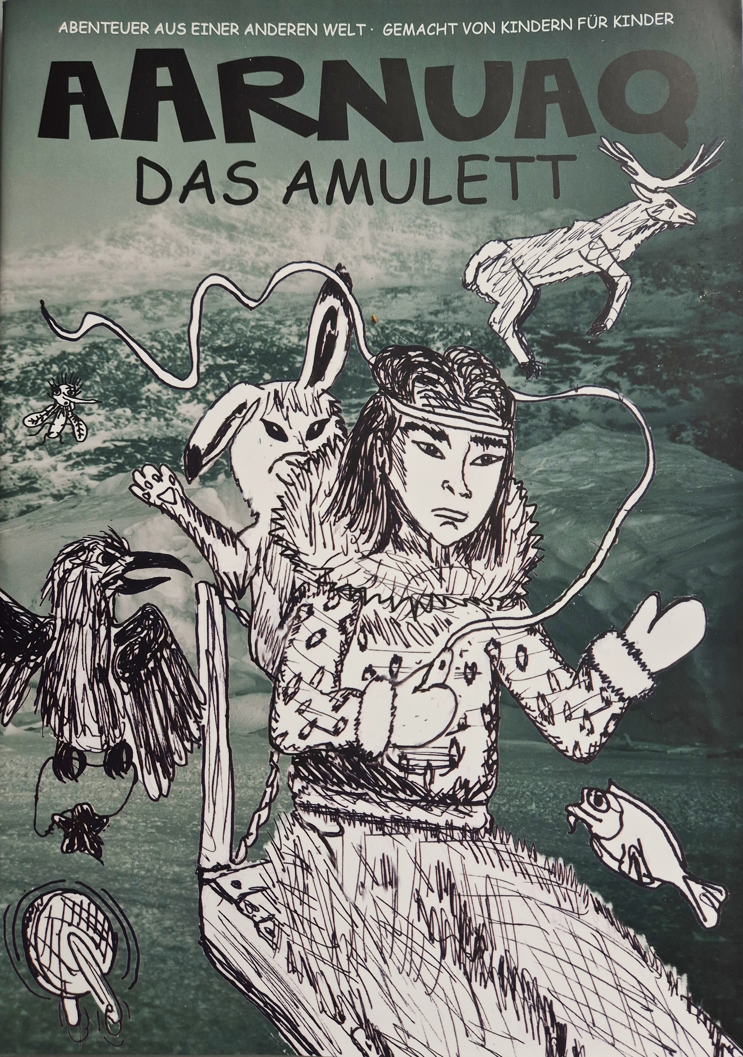 Deutsche Ausgabe Text, Ziichnungen und Fotos Kinder aus dem Kinderheim in Uummannaq Aarnuaq - Das Amulett Produktion und Edition: Kim Wendt - Søren Alfred Olsen ISBN 978-87-971192-4-2 Booklet: 30 Seiten Erstausgabe, Uummannaq 2020 |